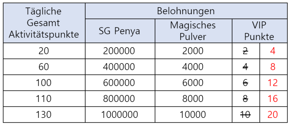 Event: Tägliche Aktivitäten (Doppelte VIP Punkte)