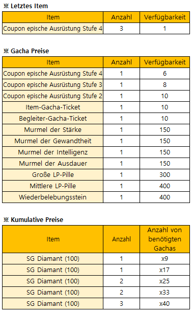 *Das Event endet früher wenn alle Begrenzte Gacha Preise verbraucht sind.