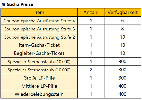 *Das Event endet früher wenn alle Begrenzte Gacha Preise verbraucht sind.