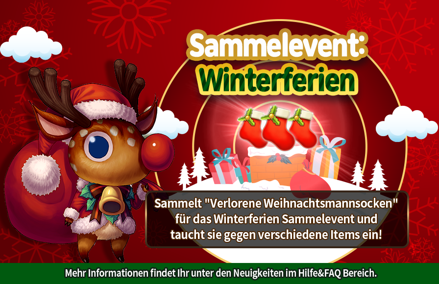 "Verlorene Weihnachtsmannsocken" Items droppen nicht nach dem 17.12.2025 23:59, ABER sie können bis zum 18.12.2025 23:59 eingetauscht werden. Nach der Tauschperiode werden die "Verlorene Weihnachtsmannsocken" Items im Zuge der darauffolgenden Serverwartung aus dem Inventar gelöscht. Davor können sie noch für SG Penya verkauft werden.