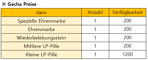 *Das Event endet früher wenn alle Begrenzte Gacha Preise verbraucht sind.