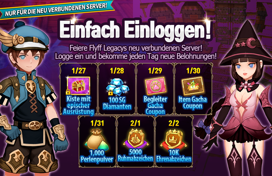 BESCHREIBUNG: Einloggen und jeden Tag neue Belohnungen abstauben! (Nur für neu gemergte Server)