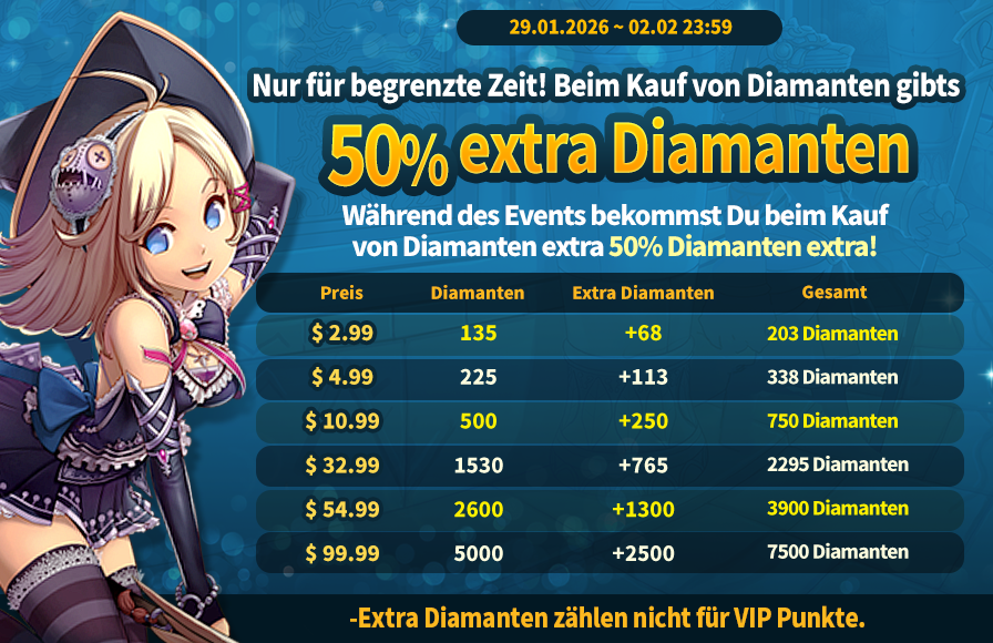 BESCHREIBUNG: Beim Kauf von Diamanten gibt es 50% extra Diamanten!*