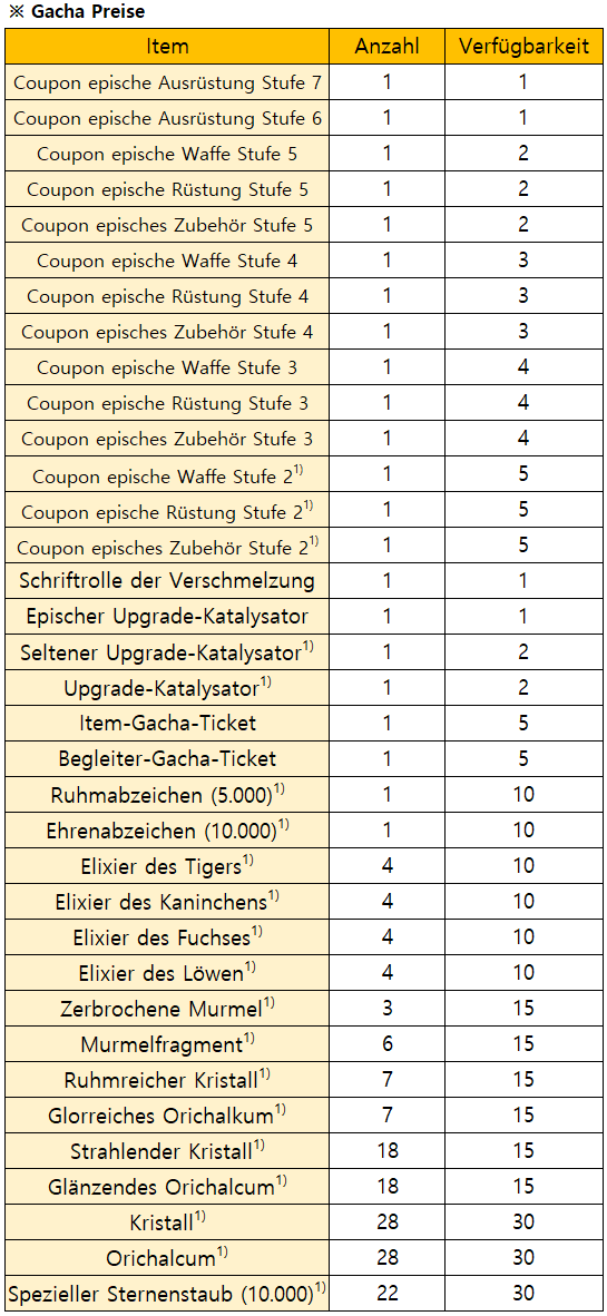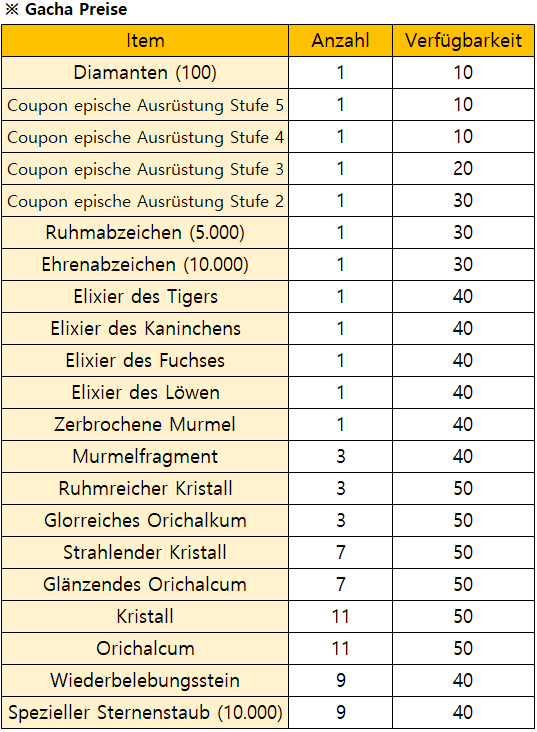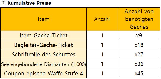 *Das Event endet früher wenn alle Begrenzte Gacha Preise verbraucht sind.