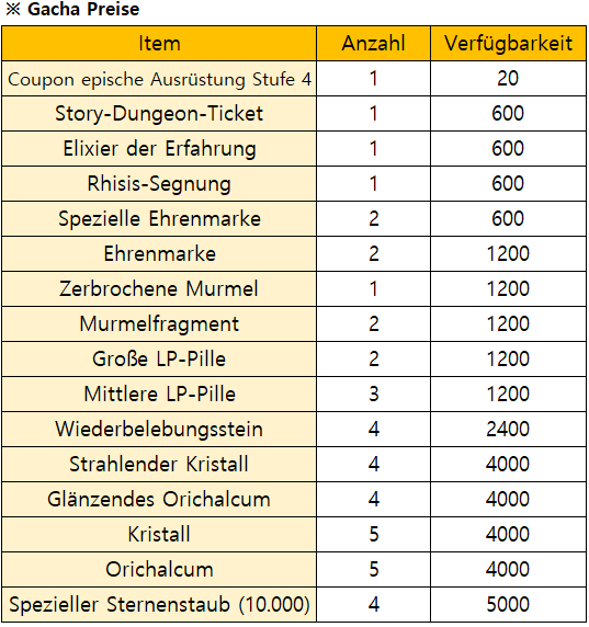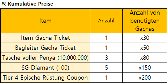 *Das Event endet früher wenn alle Begrenzte Gacha Preise verbraucht sind.