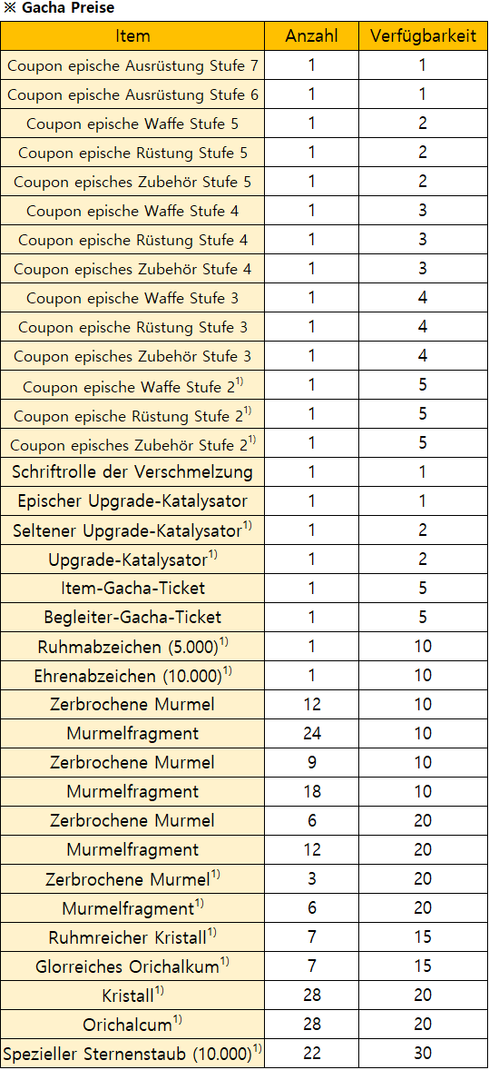 Kosten 1 Gacha : 110 Diamanten