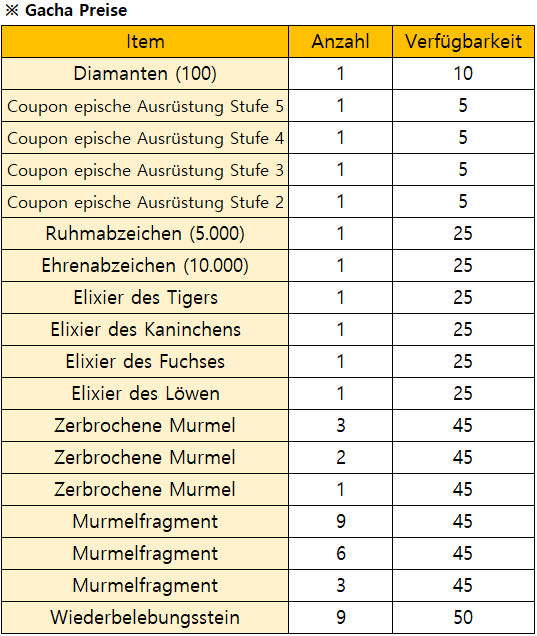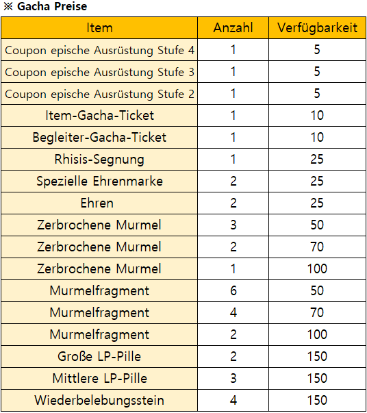 *Das Event endet früher wenn alle Begrenzte Gacha Preise verbraucht sind.