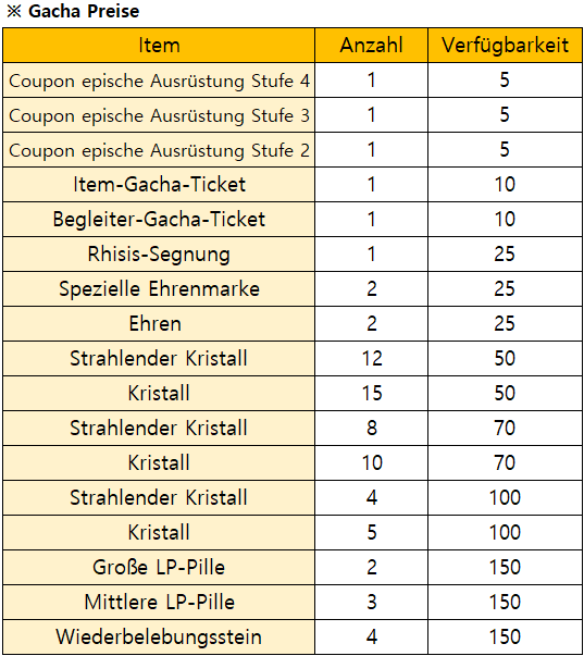 *Das Event endet früher wenn alle Begrenzte Gacha Preise verbraucht sind.