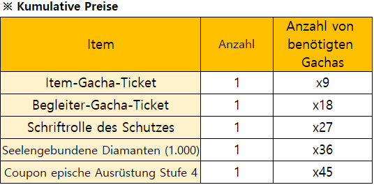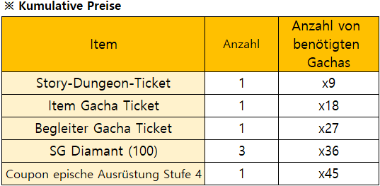 *Das Event endet früher wenn alle Begrenzte Gacha Preise verbraucht sind.