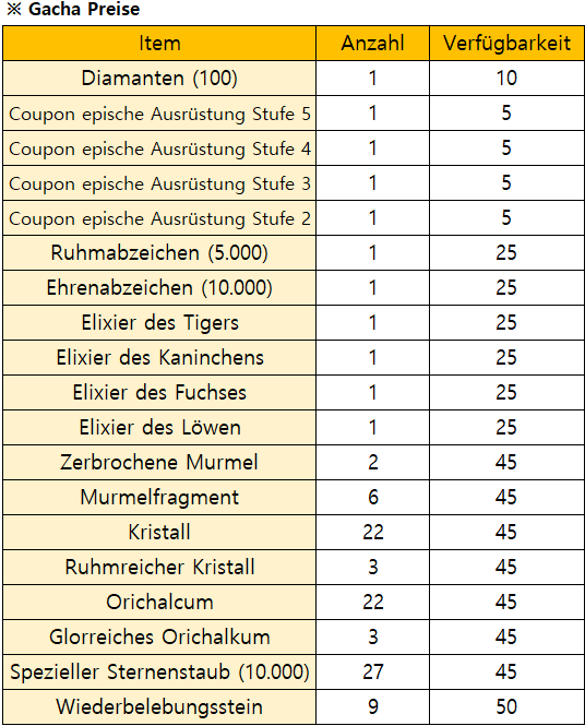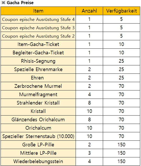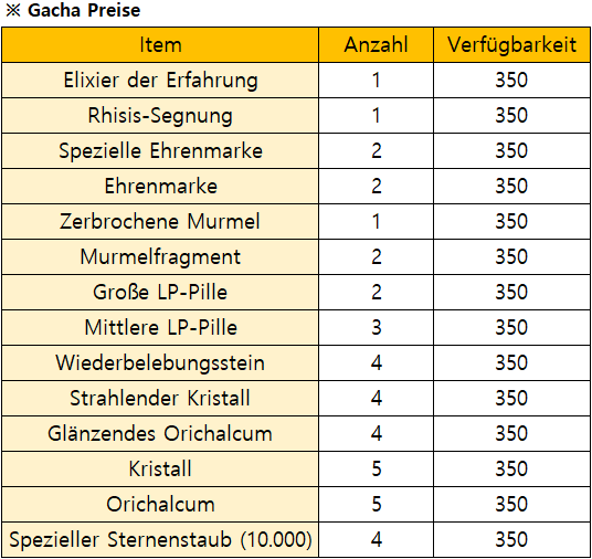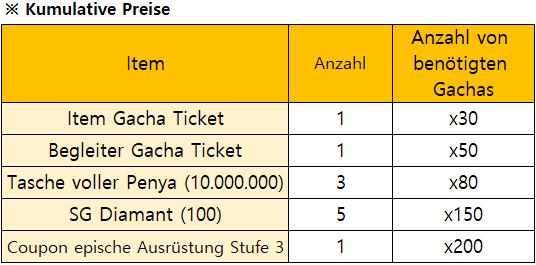 *Das Event endet früher wenn alle Begrenzte Gacha Preise verbraucht sind.
