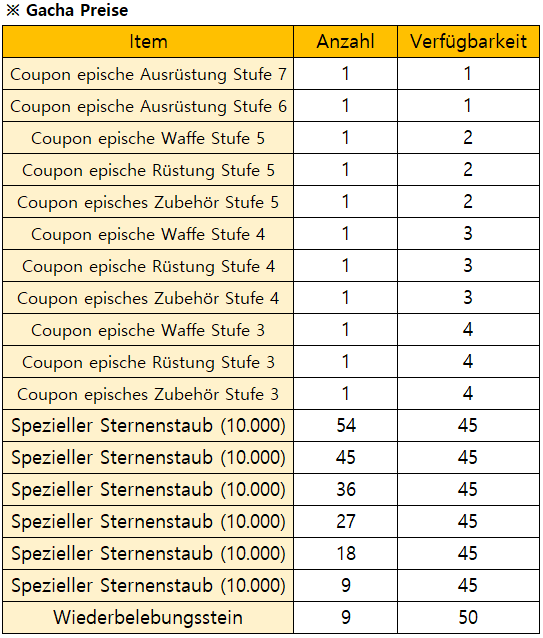 *Das Event endet früher wenn alle Begrenzte Gacha Preise verbraucht sind.