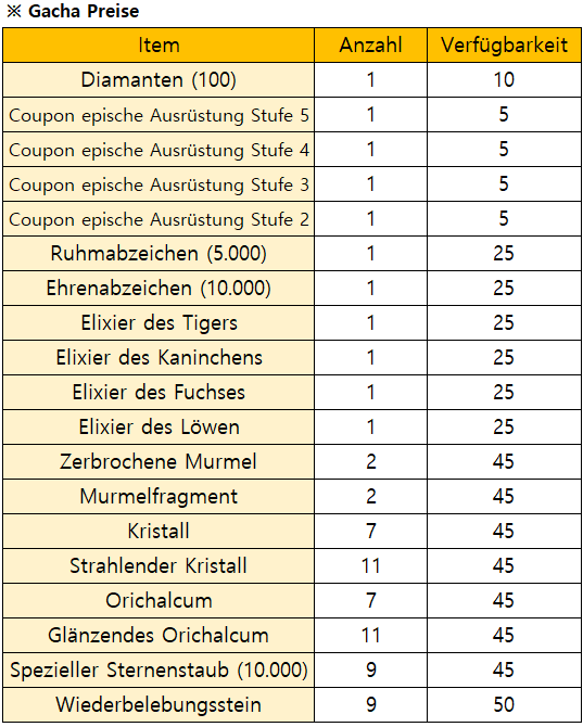 *Das Event endet früher wenn alle Begrenzte Gacha Preise verbraucht sind.