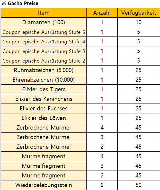 *Das Event endet früher wenn alle Begrenzte Gacha Preise verbraucht sind.