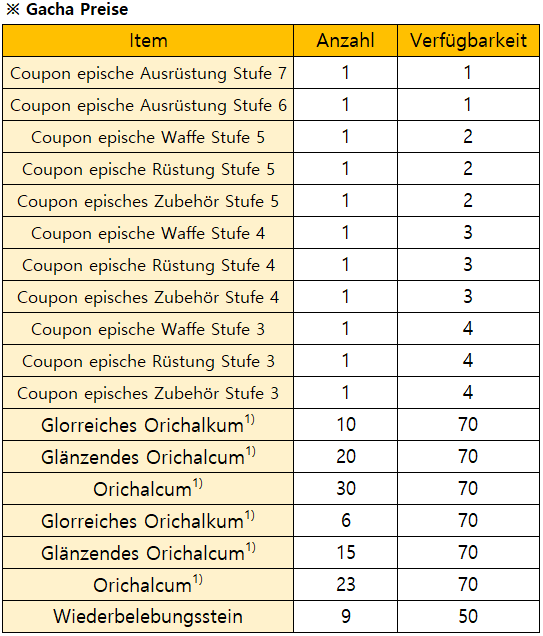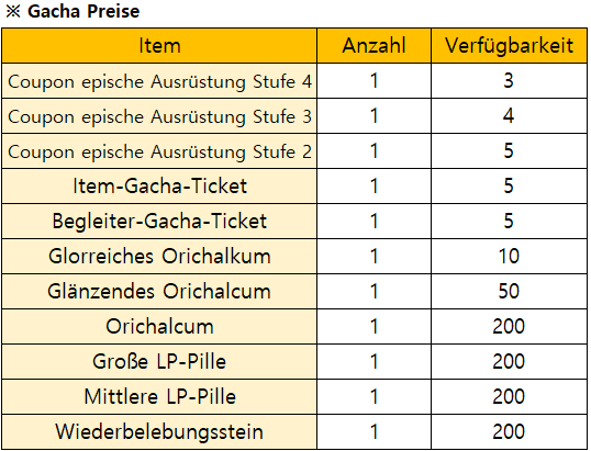 *Das Event endet früher wenn alle Begrenzte Gacha Preise verbraucht sind.