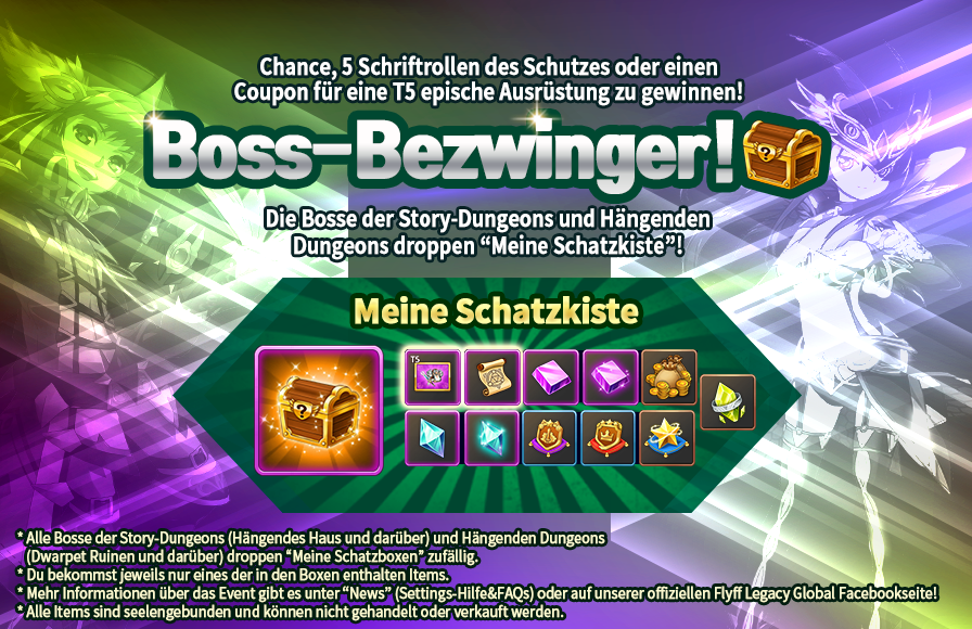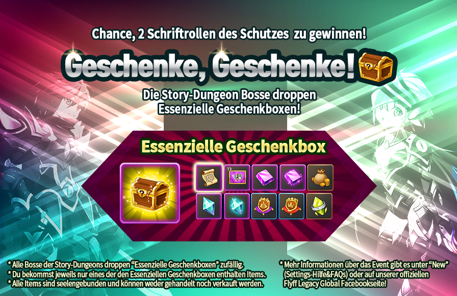 BESCHREIBUNG: Story Dungeon und Hängende Dungeon Bosse können eine "Essentielle Geschenkbox" und "Meine Schatzkiste" droppen.