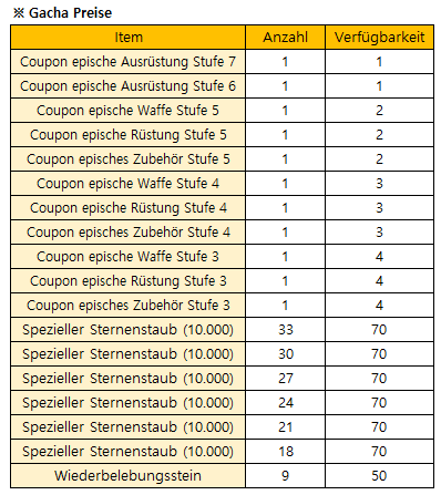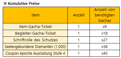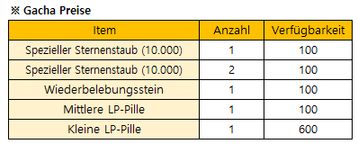 *Das Event endet früher wenn alle Begrenzte Gacha Preise verbraucht sind.