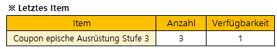 • 1x Tier 3 Zufällige Epische Ausrüstung Coupon