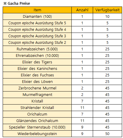 *Das Event endet früher wenn alle Begrenzte Gacha Preise verbraucht sind.