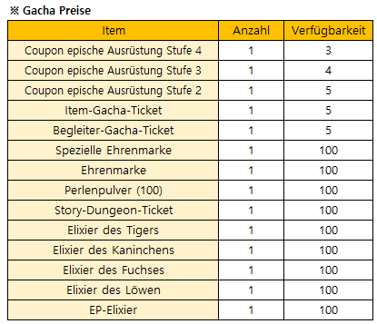 *Das Event endet früher wenn alle Begrenzte Gacha Preise verbraucht sind.