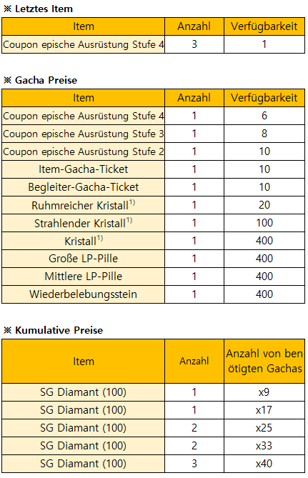 *Das Event endet früher wenn alle Begrenzte Gacha Preise verbraucht sind.