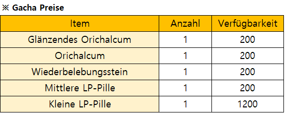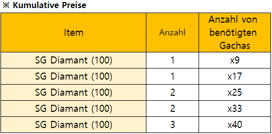 *Das Event endet früher wenn alle Begrenzte Gacha Preise verbraucht sind.
