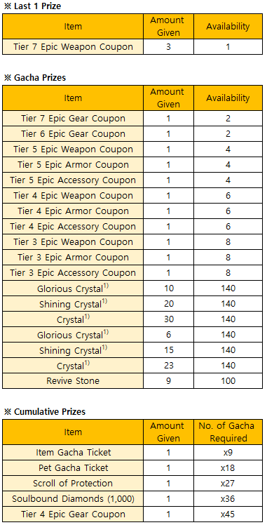 Description: You can obtain random items in this Limited Gacha. Use this chance to obtain various items and a chance to win a rare prize!