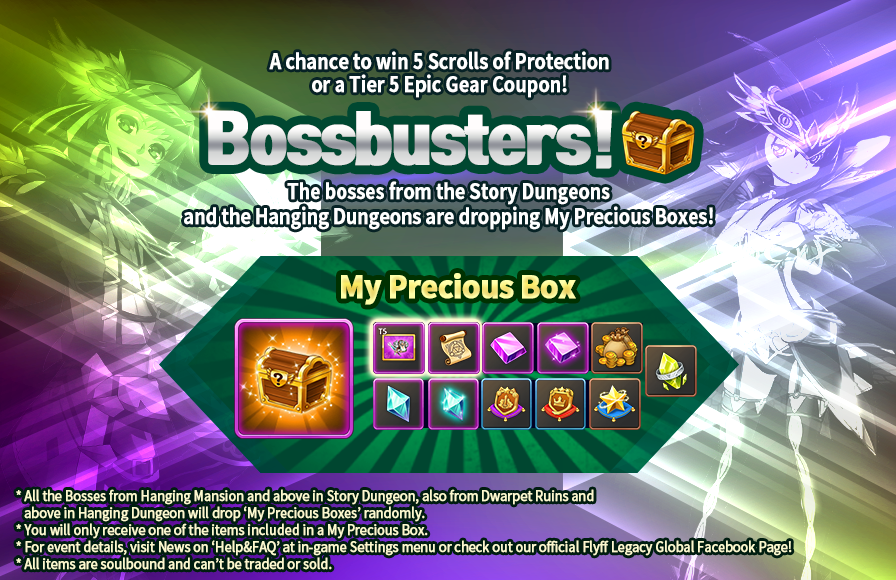 DESCRIPTION: Story dungeon and Hanging Dungeon Bosses have chance to drop "Essential Goody Box" and "My Precious Box"