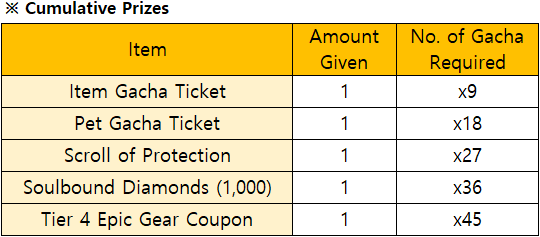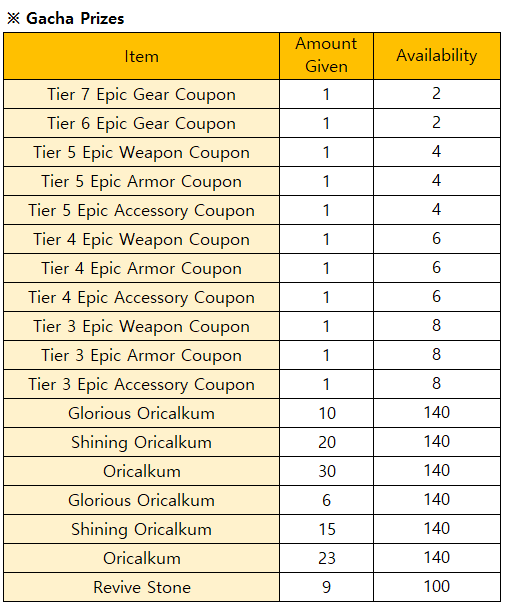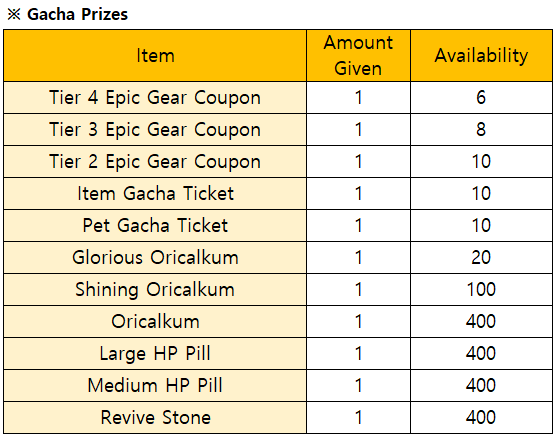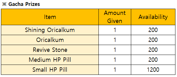 Description: You can obtain random items in this Limited Gacha. Use this chance to obtain various items and a chance to win a rare prize!