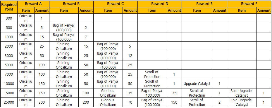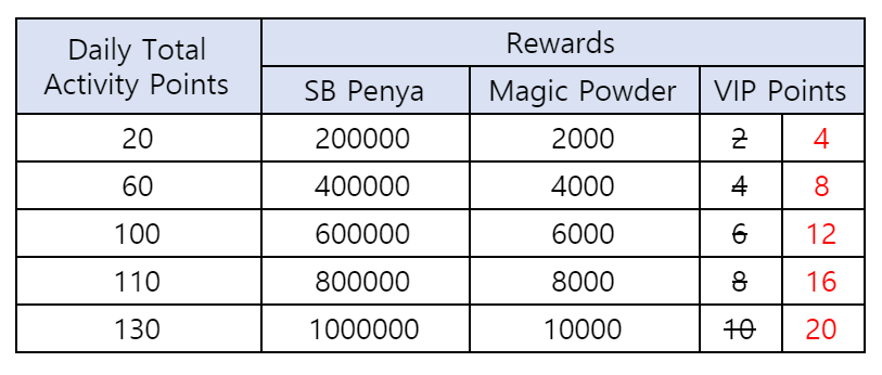 ● Event Reward (Look at ‘Reward’-‘Daily Activity’ in-game for reference)