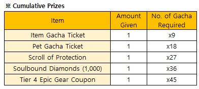 Description: You can obtain random items in this Limited Gacha. Use this chance to obtain various items and a chance to win a rare prize!