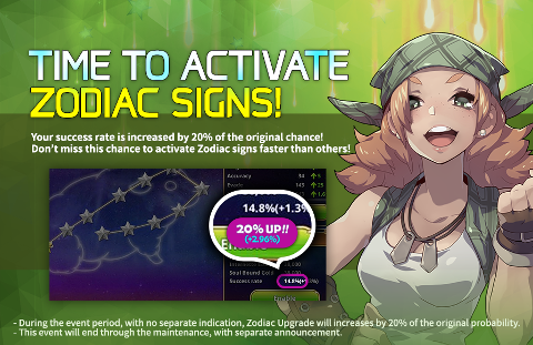 DESCRIPTION: Your success rate is increased by 20% of the original chance! Don't miss this chance to activate Zodiac signs faster than others!