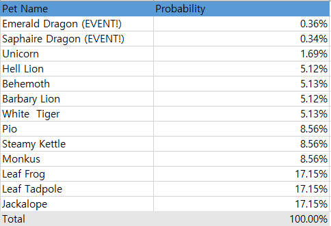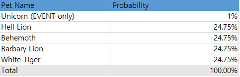 ★Pet Gacha List (from 10 Pet Gacha, if one or more of 9 pets were not Epic, the probability of 10th pet)