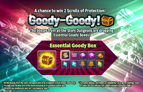 DESCRIPTION: Story dungeon and Hanging Dungeon Bosses have chance to drop "Essential Goody Box" and "My Precious Box"