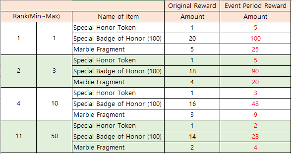 Please refer to the table below for the event rewards depending on your Duel rank.
