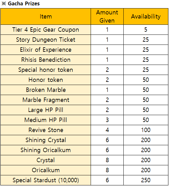 Description: You can obtain random items in this Limited Gacha. Use this chance to obtain various items and a chance to win a rare prize!