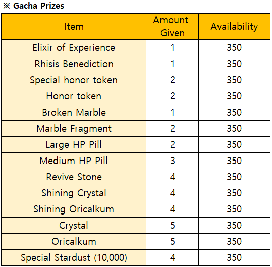 Description: You can obtain random items in this Limited Gacha. Use this chance to obtain various items and a chance to win a rare prize!