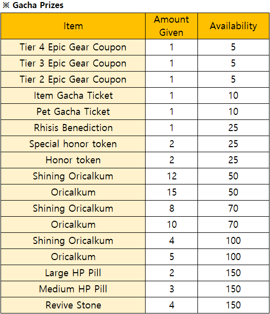 Description: You can obtain random items in this Limited Gacha. Use this chance to obtain various items and a chance to win a rare prize!