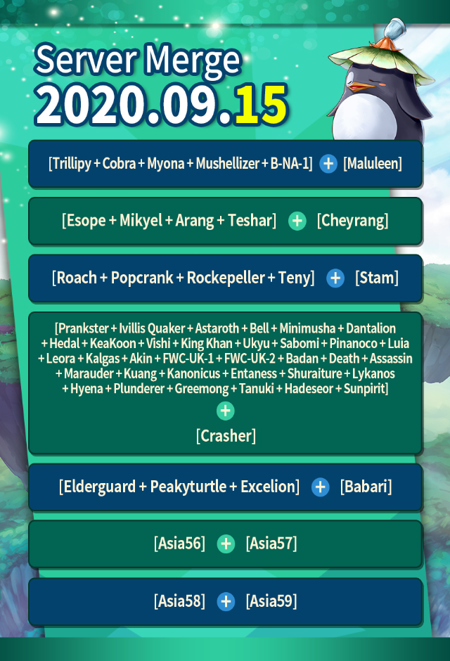 We're announcing some upcoming server merges, which will take place on September 15, 16.