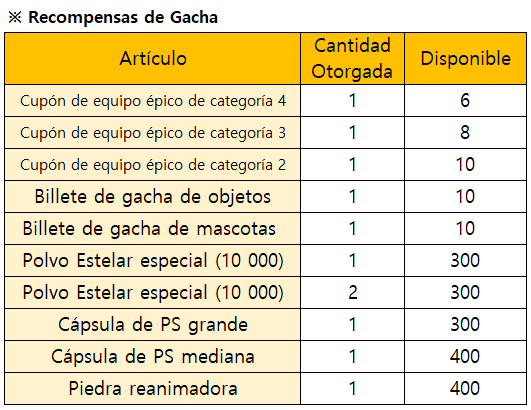 *El evento finalizará de forma inmediata al agotarse todas las recompensas de Gacha Limitada.