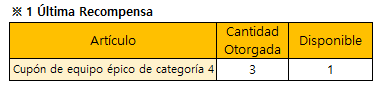 • La recompensa especial para la 1° Clasificación, se entregará automáticamente en el buzón del ganador, una vez que finalice el evento.