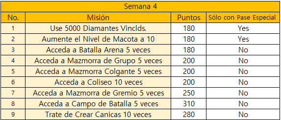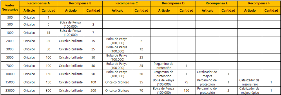 • Para éste evento, solo las Mazmorras Histórica, Diarias, y de Grupo se contabilizarán para los puntos de Mazmorras Completadas.