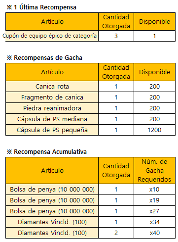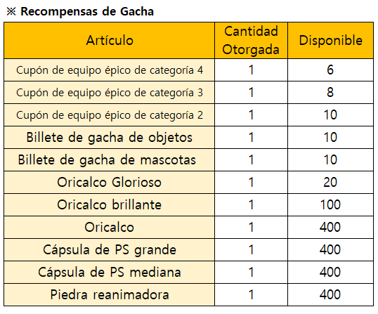 *El evento finalizará de forma inmediata al agotarse todas las recompensas de Gacha Limitada.