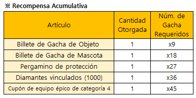 *El evento finalizará de forma inmediata al agotarse todas las recompensas de Gacha Limitada.