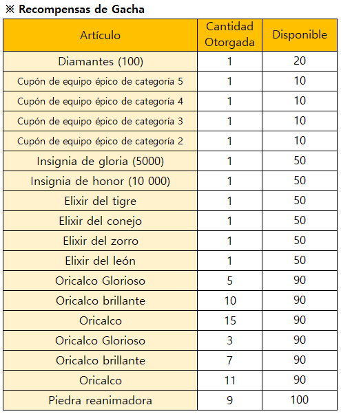 *El evento finalizará de forma inmediata al agotarse todas las recompensas de Gacha Limitada.