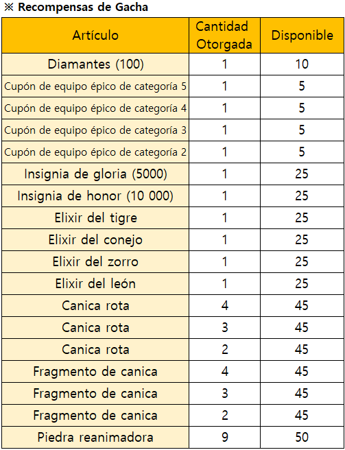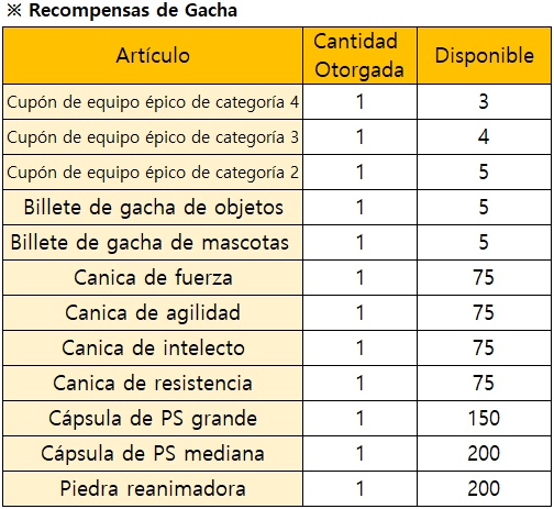 *El evento finalizará de forma inmediata al agotarse todas las recompensas de Gacha Limitada.