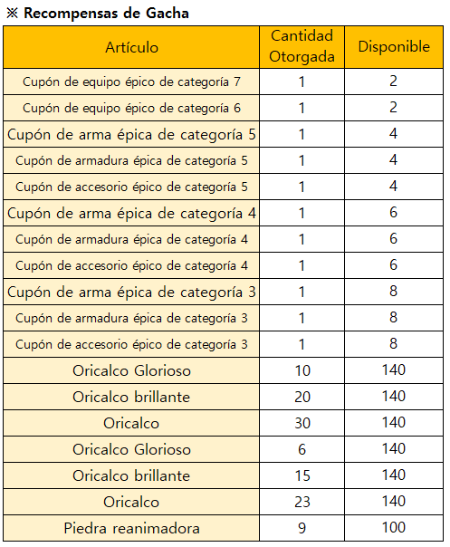 *El evento finalizará de forma inmediata al agotarse todas las recompensas de Gacha Limitada.