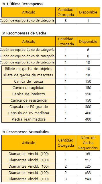 *El evento finalizará de forma inmediata al agotarse todas las recompensas de Gacha Limitada.