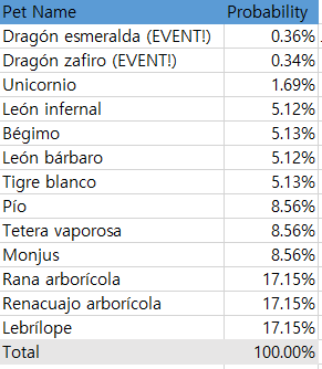 ★Lista de Mascotas de Gacha (de10 Mascotas de Gacha, si una o más de 9 fueron Épicas, la probabilidad para la 10ª)