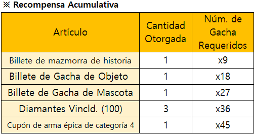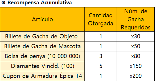 *El evento finalizará de forma inmediata al agotarse todas las recompensas de Gacha Limitada.
