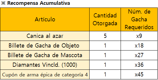 *El evento finalizará de forma inmediata al agotarse todas las recompensas de Gacha Limitada.